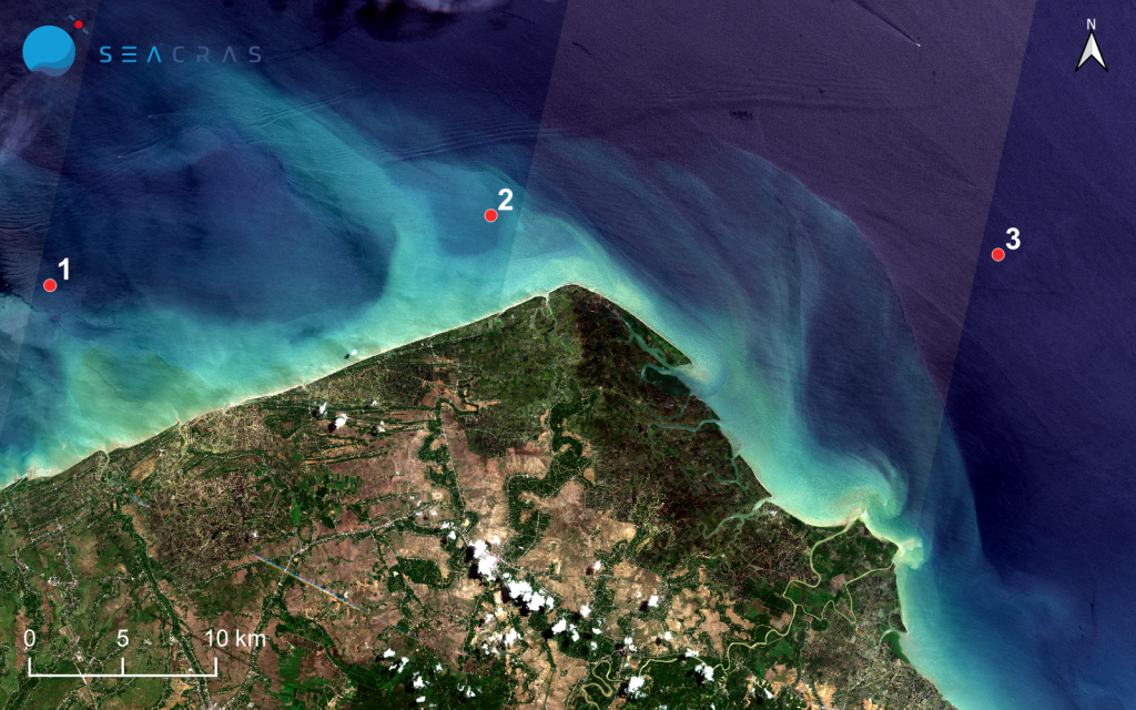 Odgovor se može pronaći u SeaCrasovom izračunu parametara stanja mora Andamanskog mora, i to konkretno koncentracije suspendirane tvari u vodenom stupcu, tzv. deskriptor D7 – hidrografski uvjeti. SeaCras je koristio svoj softverski paket Coastal Intelligence kako bi izračunao vrijednosti suspendiranih sedimenata u moru na širem području akvatorija prije i nakon poplave. Rezultati su prikazani na Slici 2.